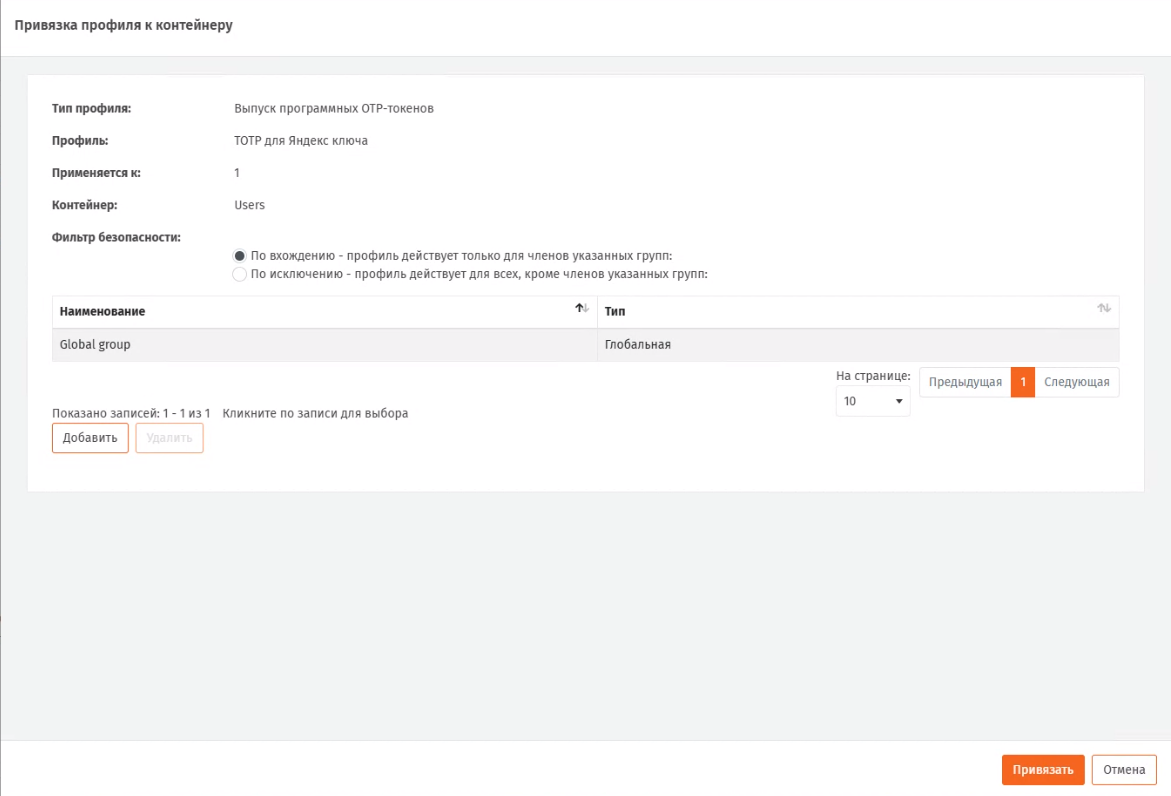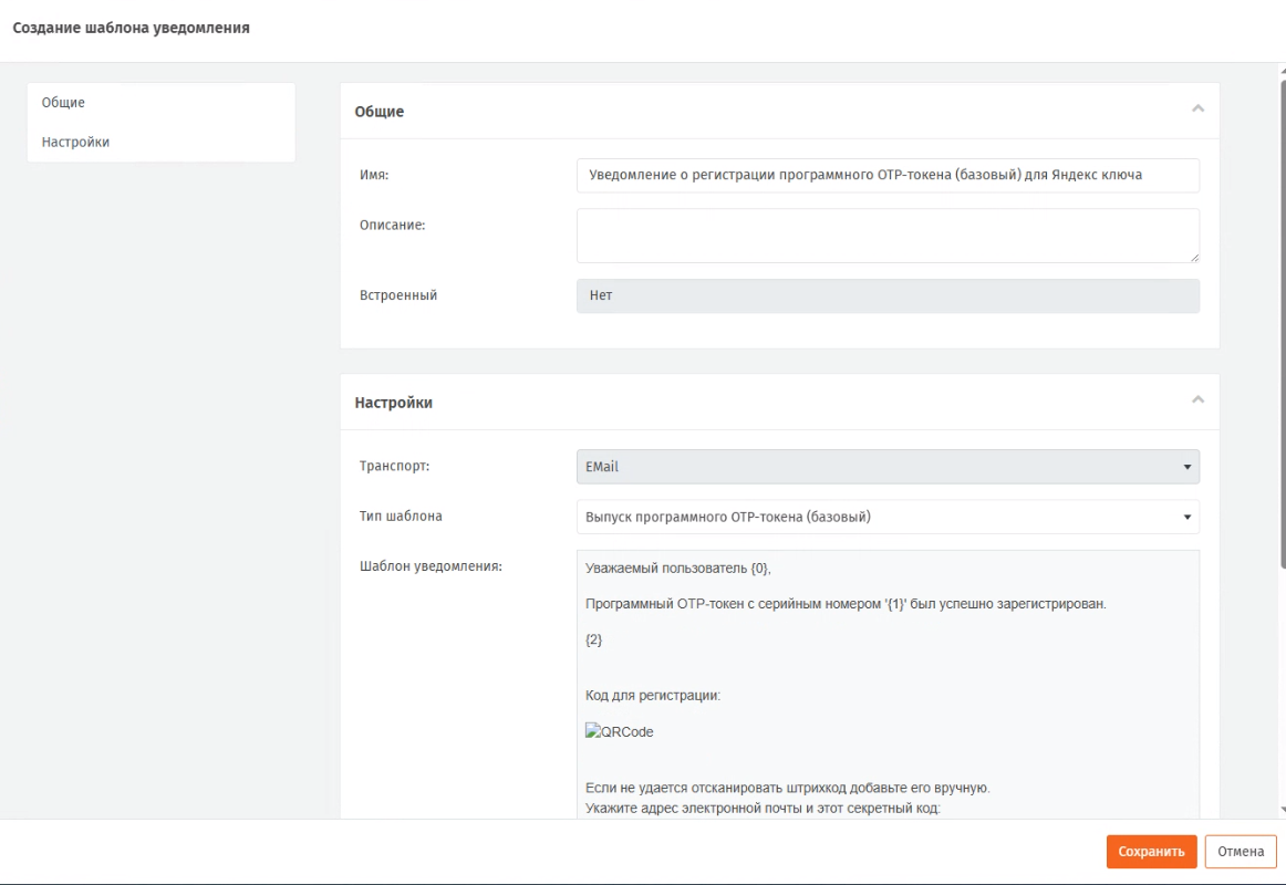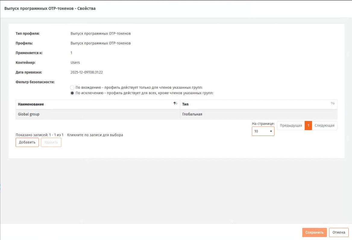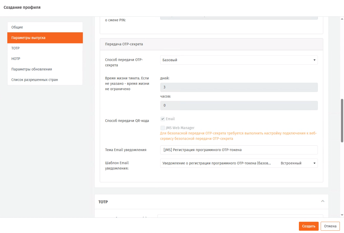 3. Создать новый профиль выпуска программных ОТР-токенов и настроить его аналогично имеющемуся, за исключением способа передачи ОТР-секрета. Его необходимо оставить с настройкой «Базовый»: