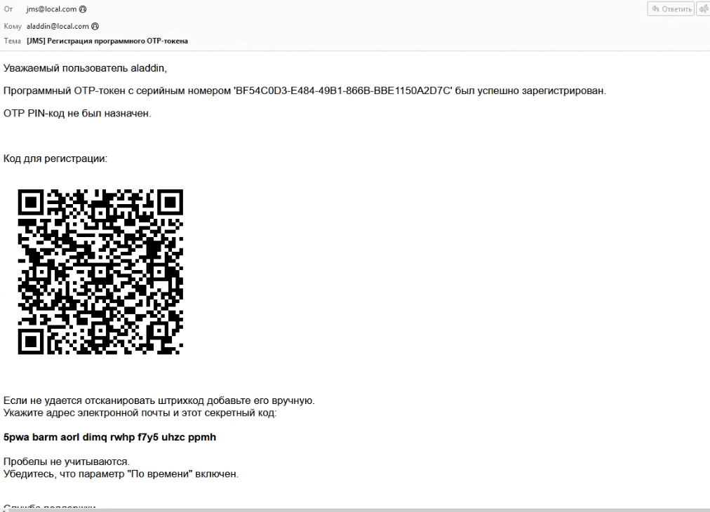 7. Выполнить план обслуживания ЖЦ OTP. Пользователю должно прийти письмо следующего вида: