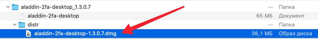 3. Открываем файл образа диска «aladdin-2fa-desktop-1.3.0.x.dmg» (Рисунок 1).