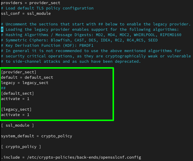 Причина возникновения: В RedOS 8 установлен пакет OpenSSL 3.0, в котором по умолчанию запрещено использование алгоритма MD4, который используется в gss-ntlm. Решение: Для обхода проблемы нужно разрешить в конфигурации OpenSSL legacy-алгоритмы и перезапустить демон сервера JMS: